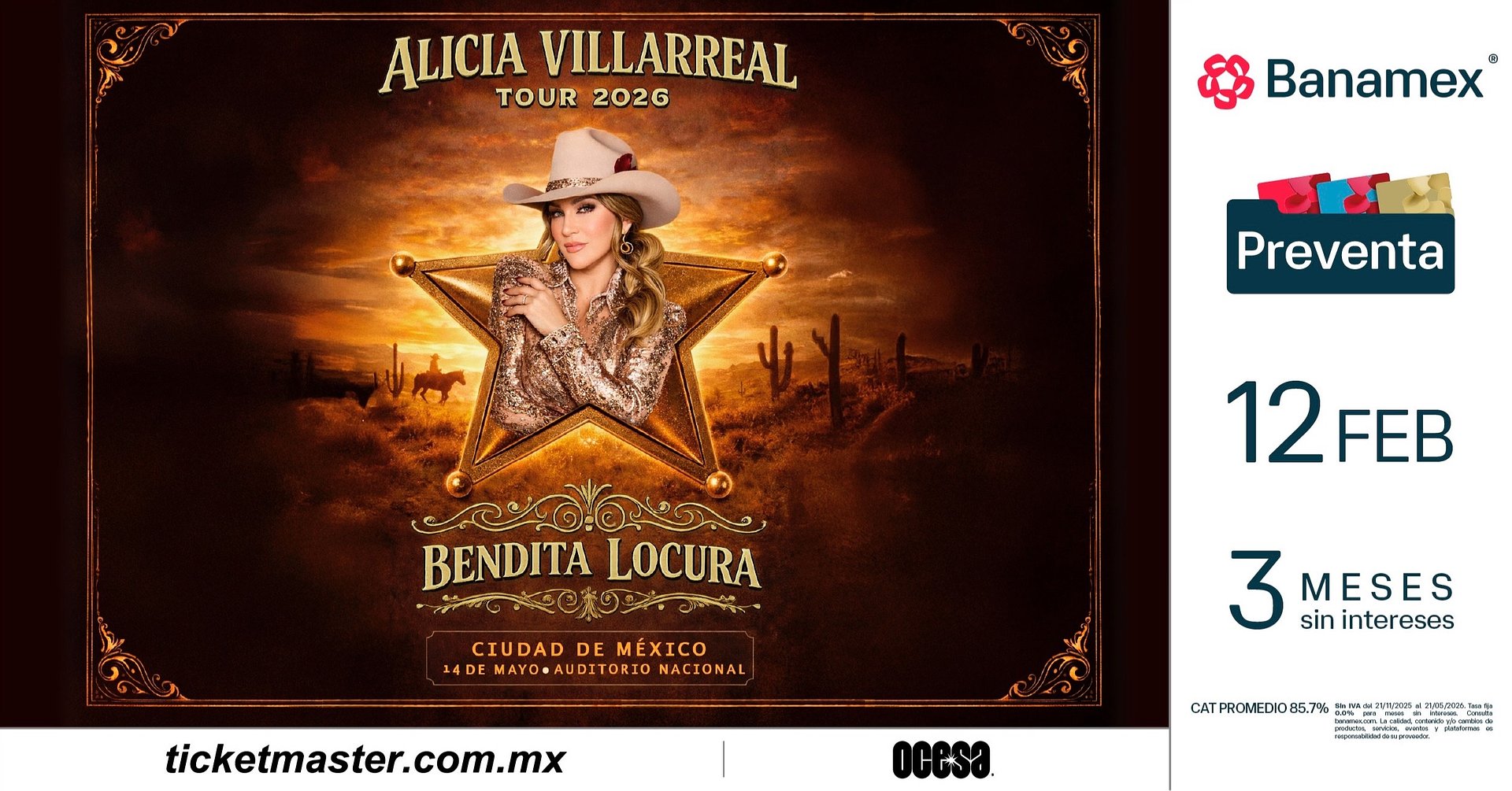 No te pierdas la oportunidad de vivir la Bendita Locura de Alicia Villarreal en vivo. Los boletos estarán en preventa Banamex el 12 de febrero, y un día después (viernes 13 de febrero) los podrás adquirir en las taquillas del inmueble o a través de ticketmaster.com.mx.