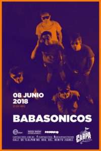 Con cientos de canciones a cuestas y más de 25 años de una trayectoria arropada por los éxitos que los han encumbrado como una de las bandas más poderosas de su natal Argentina, Babasónicos llegarán con el mérito de haber colgado en dos ocasiones el letrero de sold out en diversos recintos de nuestro país el año pasado como parte de la promoción de su disco Desde Adentro – Impuesto de Fe.