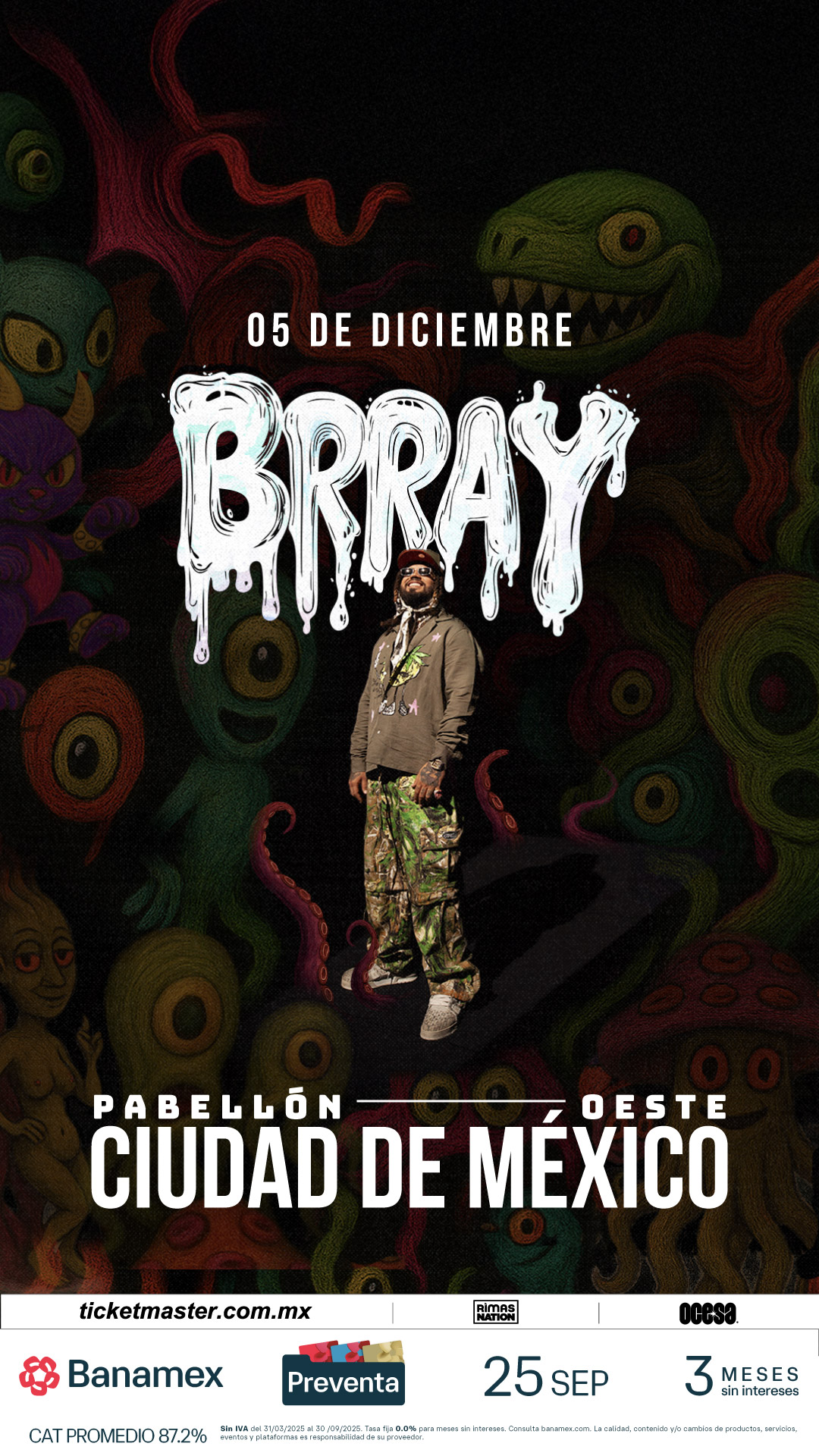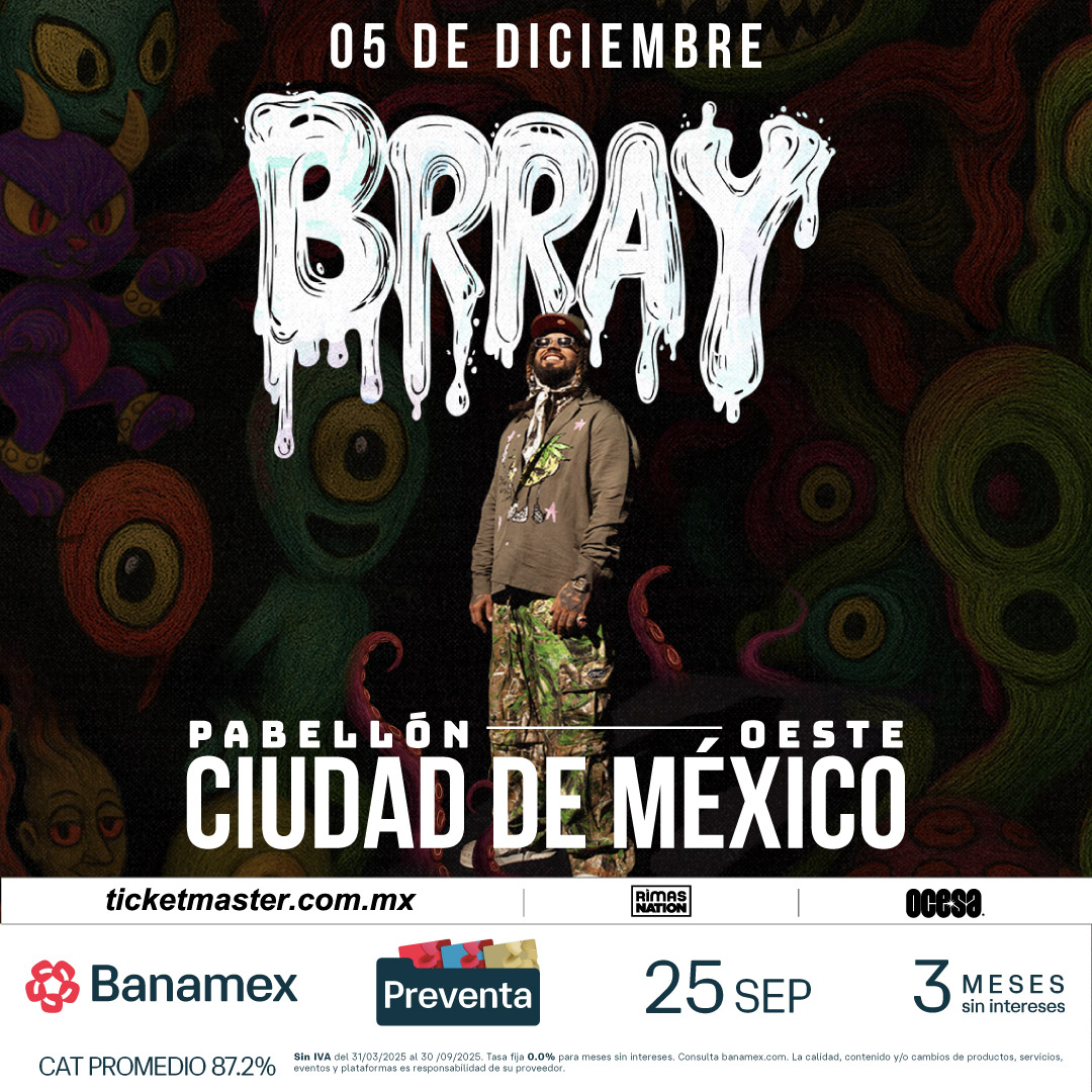 El que sabe, sabe que BRRAY es la cara del perreo de la última década, ¡y está listo para reventar el Pabellón Oeste del Palacio de los Deportes el próximo viernes 5 de diciembre! Desde 2016, ha demostrado porqué es 1 de los más duros de la escena urbana, mezclando fragmentos clásicos del reggaetón con un flow más fresco. Asegura tu lugar y sigue escribiendo la historia del boricua que llegó para llevarte al inframundo del perreo.