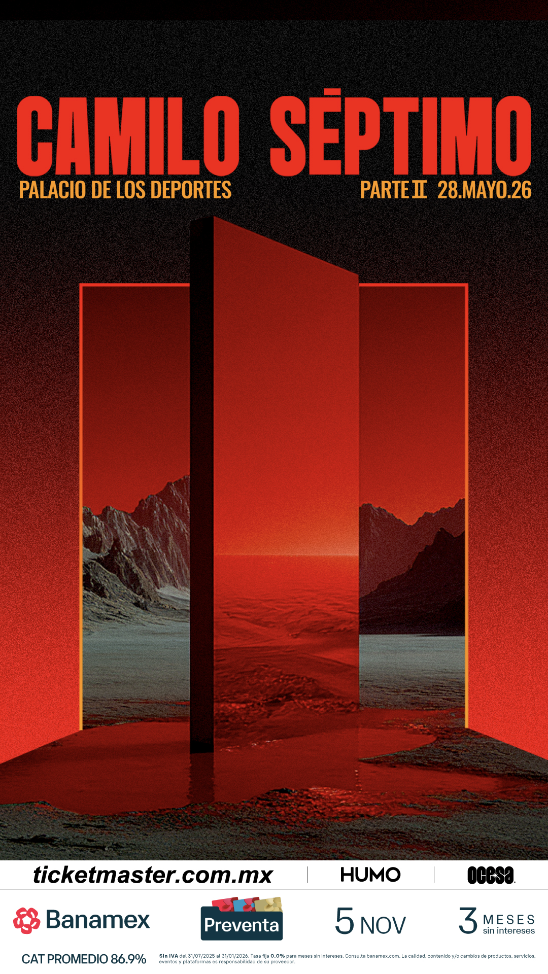 Esta es tu oportunidad de asegurar tu lugar en este nuevo concierto de Camilo Séptimo y vivir la experiencia de sus melodías llenas de atmósfera. Si te perdiste la 1ª fecha, o si una noche no te basta, ¡esta es tu señal! ¡Corre por tus boletos para el 28 de mayo en el Palacio de los Deportes y únete a la revolución sonora!