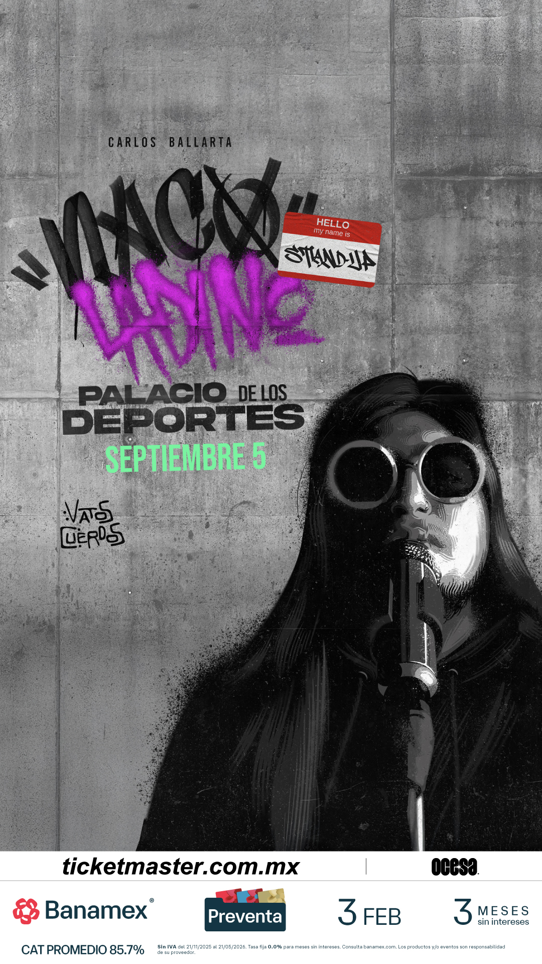 Este tour internacional es el preámbulo perfecto para lo que viviremos en septiembre: la consolidación de un artista que ha sabido transformar la crítica social en un fenómeno de masas: Carlos Ballarta. Los boletos estarán en preventa Banamex el 3 de febrero, y un día después los podrás adquirir en las taquillas del inmueble o a través de ticketmaster.com.mx.