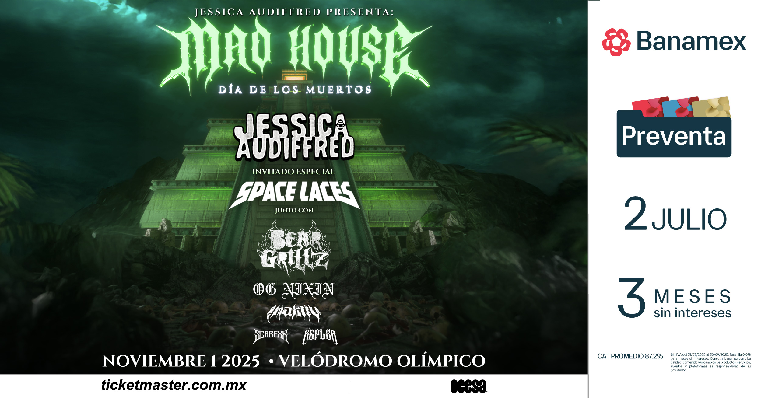 La cita es el próximo sábado 1º de noviembre en el Velódromo Olímpico de la Ciudad de México, una nueva sede que vibrará al ritmo de los beats más pesados. No se pierdan la oportunidad de ser parte de este evento que, con su nueva locación y en una fecha tan especial, seguro dejará huella.