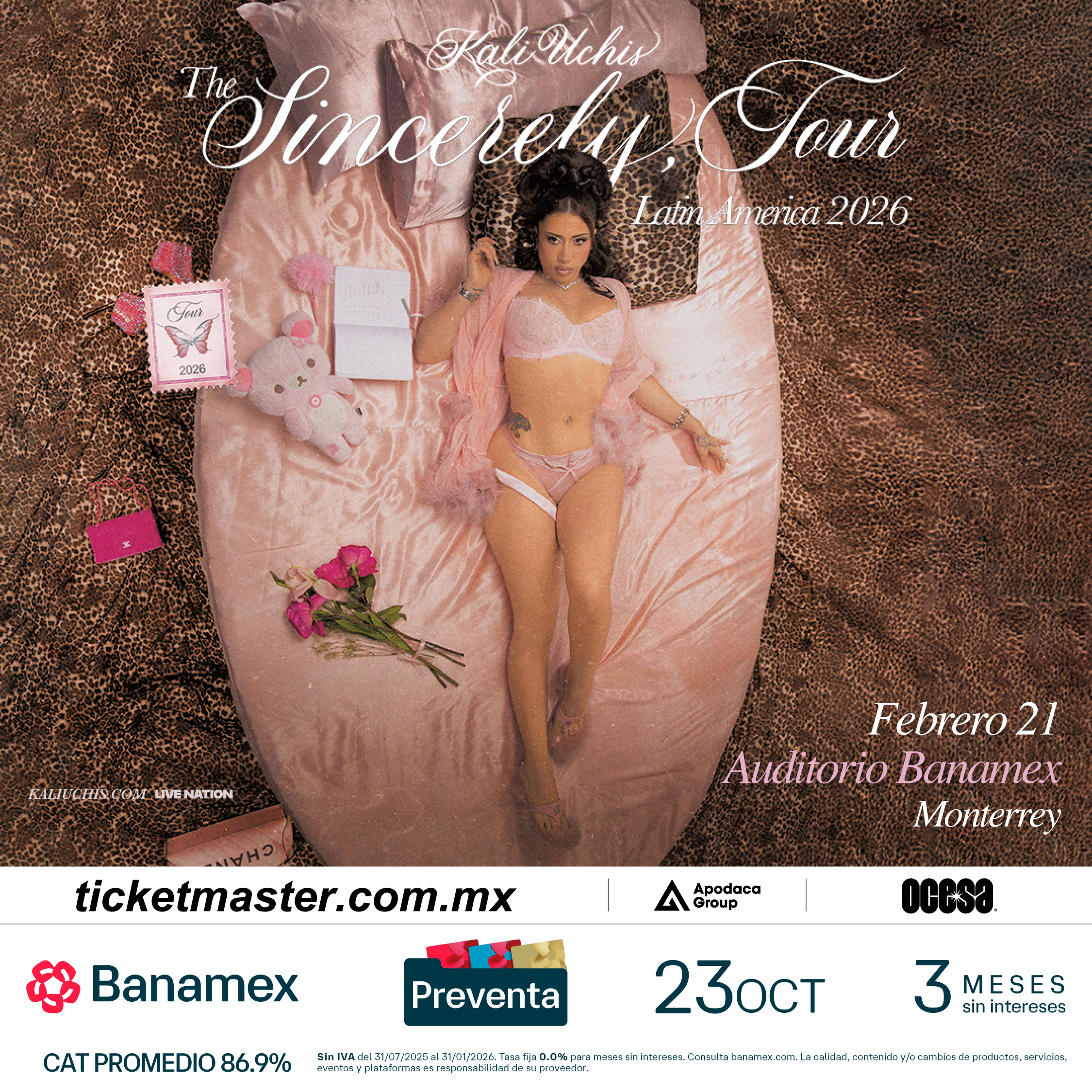 Producida por Live Nation, la gira de Kali Uchis comenzará el domingo 8 de febrero de 2026 en Vibra São Paulo (São Paulo, Brasil) y concluirá con una serie de 3 noches en México, cerrando el miércoles 25 de febrero de 2026 en el Palacio de los Deportes de la CDMX.