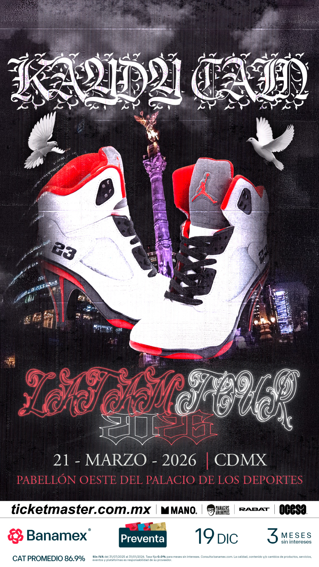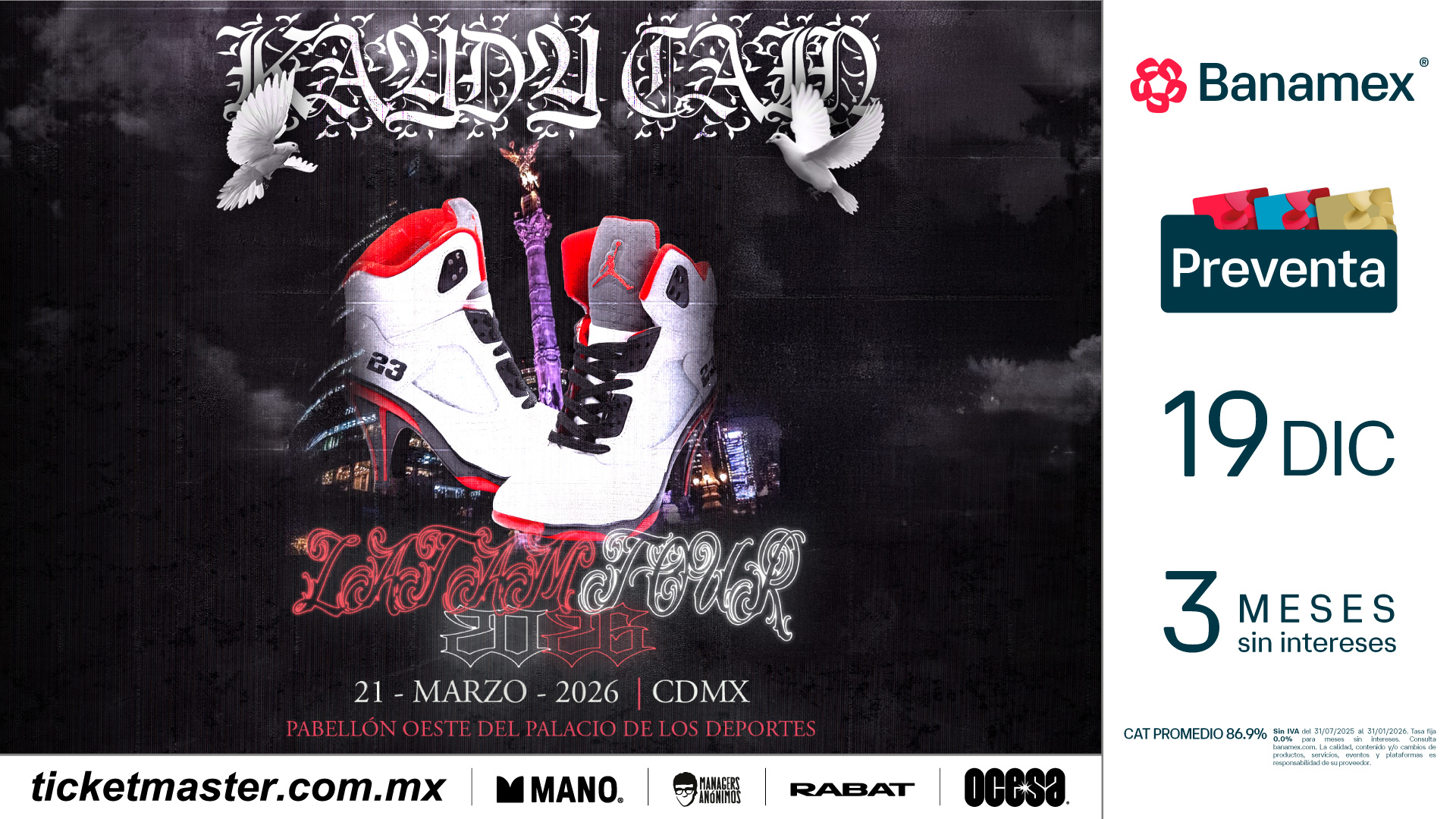 Desde España, la potencia y las rimas de Kaydy Cain se harán escuchar en la Ciudad de México. No te pierdas a esta estrella de la escena urbana el próximo sábado 21 de marzo en el Pabellón Oeste. ¡Corre por tus boletos ya que será una noche de baile, perreo y mucho swag!