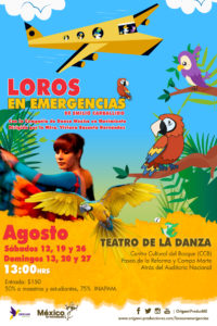 Con la adaptación teatral de Froylan Cuenta y la coreografía de Amalia Viviana Basanta Hernández, Loros en Emergencias promete en aproximadamente 90 minutos transportarnos a la selva de Tabasco donde se lleva a cabo el secuestro ilegal, criminal y alevoso de: guacamayas, papagayos, cacatúas y periquitos.
