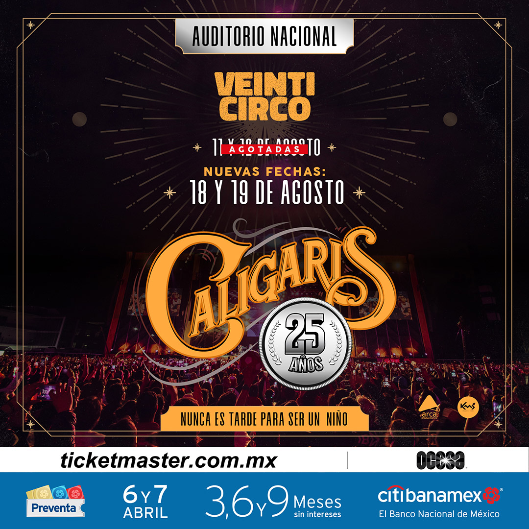 Los Caligaris, debido a la gran demanda de sus fans, añaden 2 conciertos más en el Auditorio Nacional de su gira Veinticirco, el show más importante de su carrera que celebra su primer cuarto de siglo.