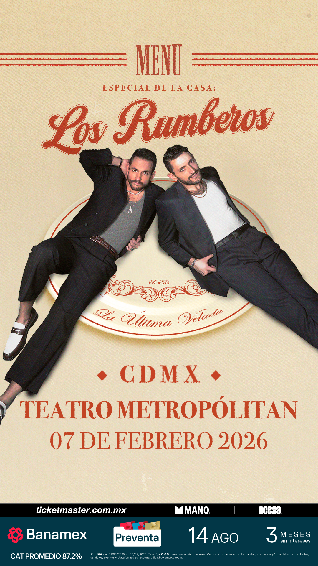 Esta es tu oportunidad de vivir un concierto lleno de baile, melodías pegajosas y el ritmo inconfundible de Los Rumberos. ¡Corre por tus boletos para el 7 de febrero en el Teatro Metropólitan y se parte de esta fiesta que promete ser inolvidable!