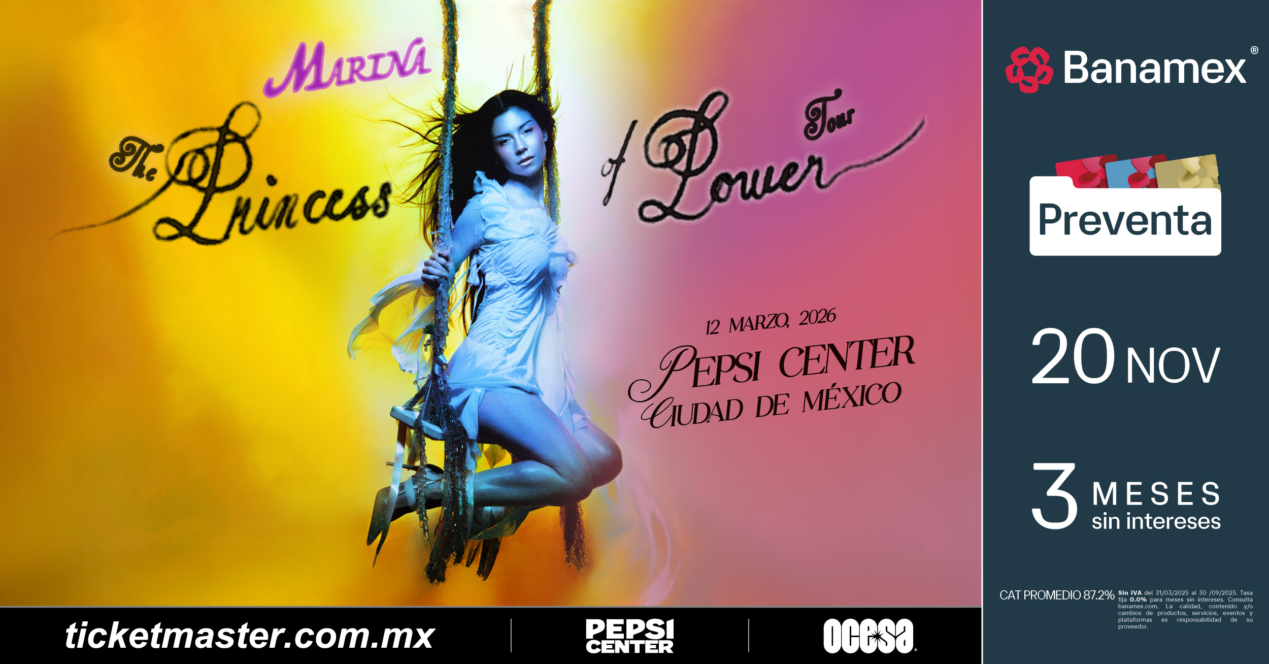Esta es la oportunidad perfecta para ver en vivo a una de las artistas más interesantes y camaleónicas del pop mundial. ‘La Princesa del Poder’ te espera en el Pepsi Center. Ve por tus boletos para el 12 de marzo y se parte de este show lleno de magia y carisma en la preventa del 20 de Noviembre y/o Venta General a partir del próximo 21 de Noviembre.
