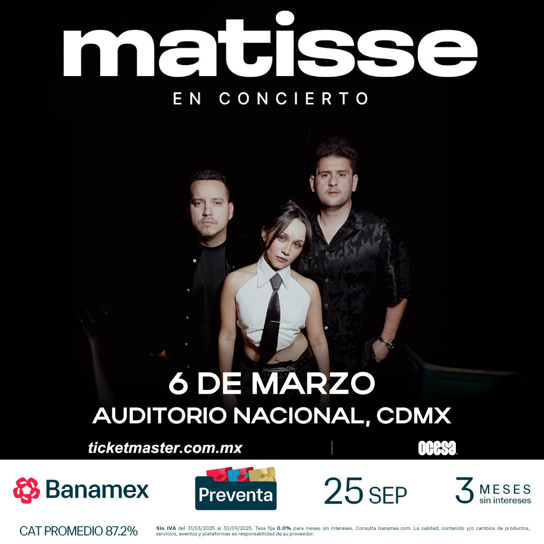 El próximo viernes 6 de marzo de 2026, el Auditorio Nacional se transformará en un espacio mágico para recibir a una de las agrupaciones pop más queridas de México. Matisse, regresa a la capital para regalarnos una noche llena de baladas que nos han hecho vibrar y letras que nos hablan del amor. Estamos seguros que no querrás perderte esta oportunidad de enamorarte de nuevo con su música.
