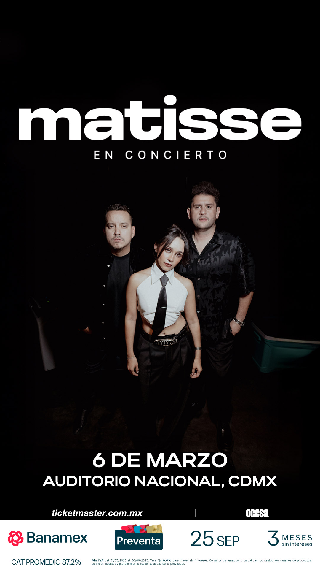 Esta es tu oportunidad de ser parte de una noche de romance y música que te dejará sin aliento. Corre por tus boletos en Preventa Banamex este 25 de septiembre y desde el 26 en Venta General en las taquillas del Auditorio Nacional y/o en Ticketmaster prepárate para cantar a todo pulmón junto a Matisse. ¡Te esperamos para celebrar la música que nos hace sentir!