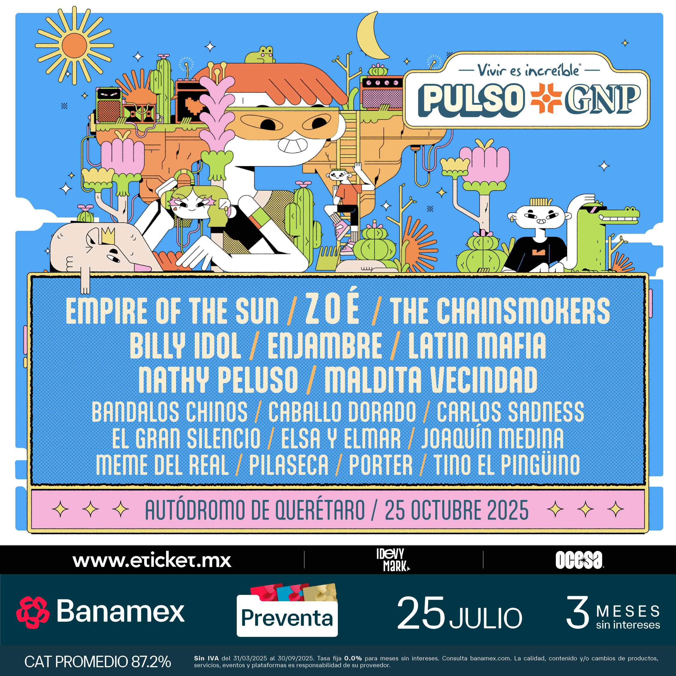 Así que ya sabes, marca el 25 de octubre en tu calendario y alista tu outfit más cool para vivir un día perfecto en el Autódromo de Querétaro. Los boletos estarán en preventa Banamex el 25 de julio, y un día después, podrás conseguirlos a través de www.eticket.mx.