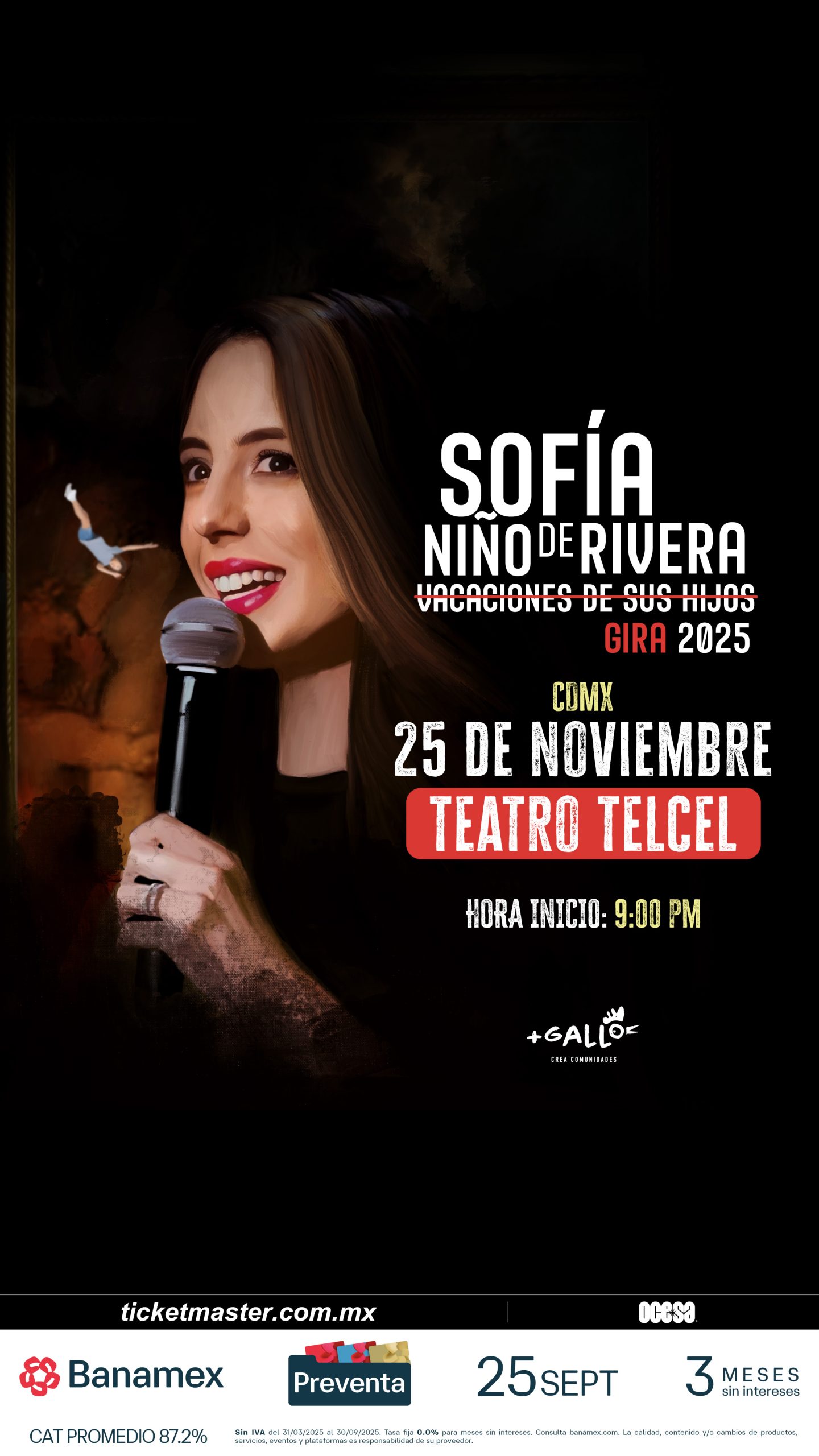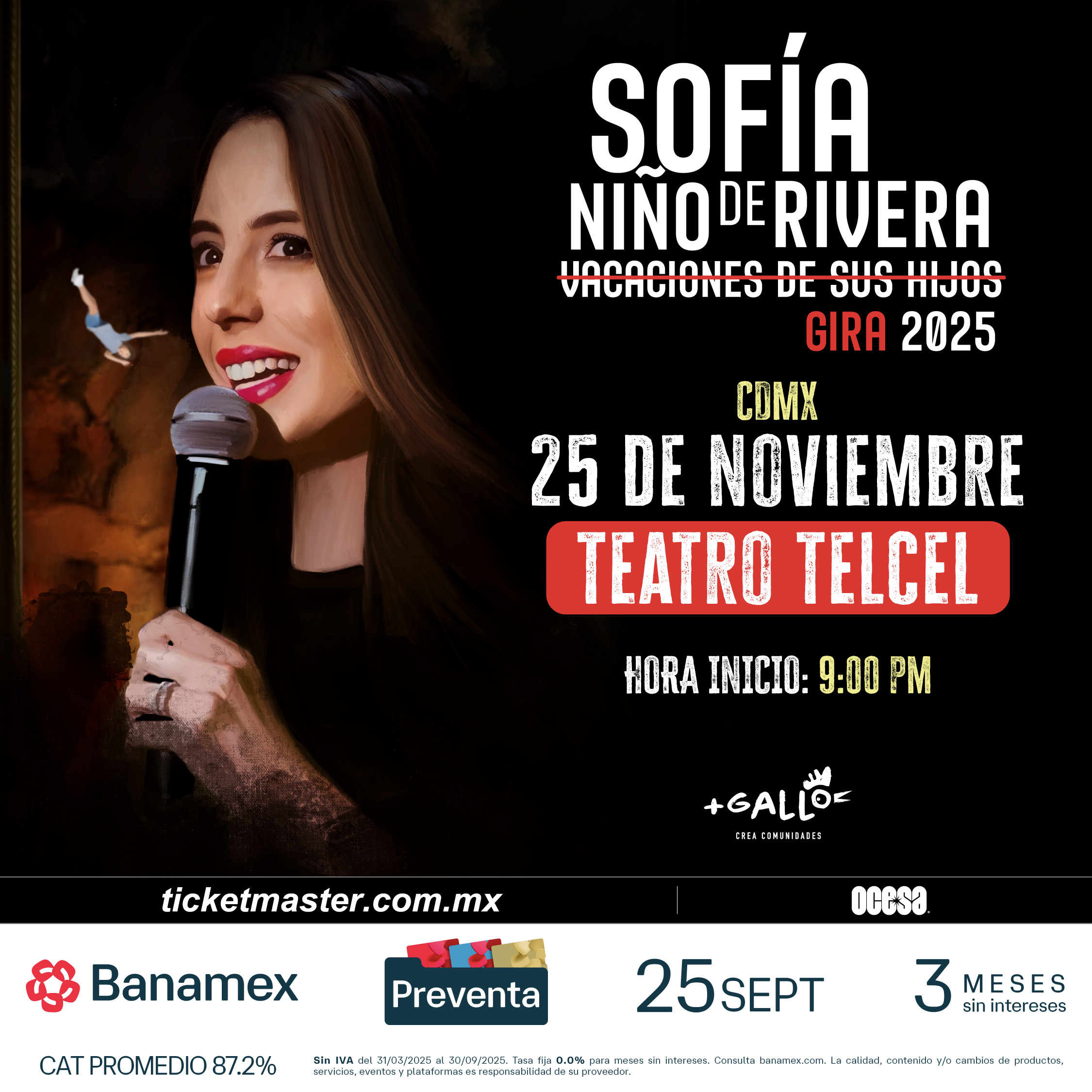 ¿A poco te vas a quedar fuera? Deja de ver el contenido de Sofía Niño de Rivera sólo en redes y mejor, ven a escucharla en vivo, no te aseguramos que te irás limpio de alguna de las interacciones con Sofía, pero las carcajadas sí corren como garantía. Asegura tus boletos en la preventa Banamex el próximo jueves 25 de Septiembre, o bien, durante la Venta General el 26 de septiembre a través de Ticketmaster y/o en la taquilla del inmueble.