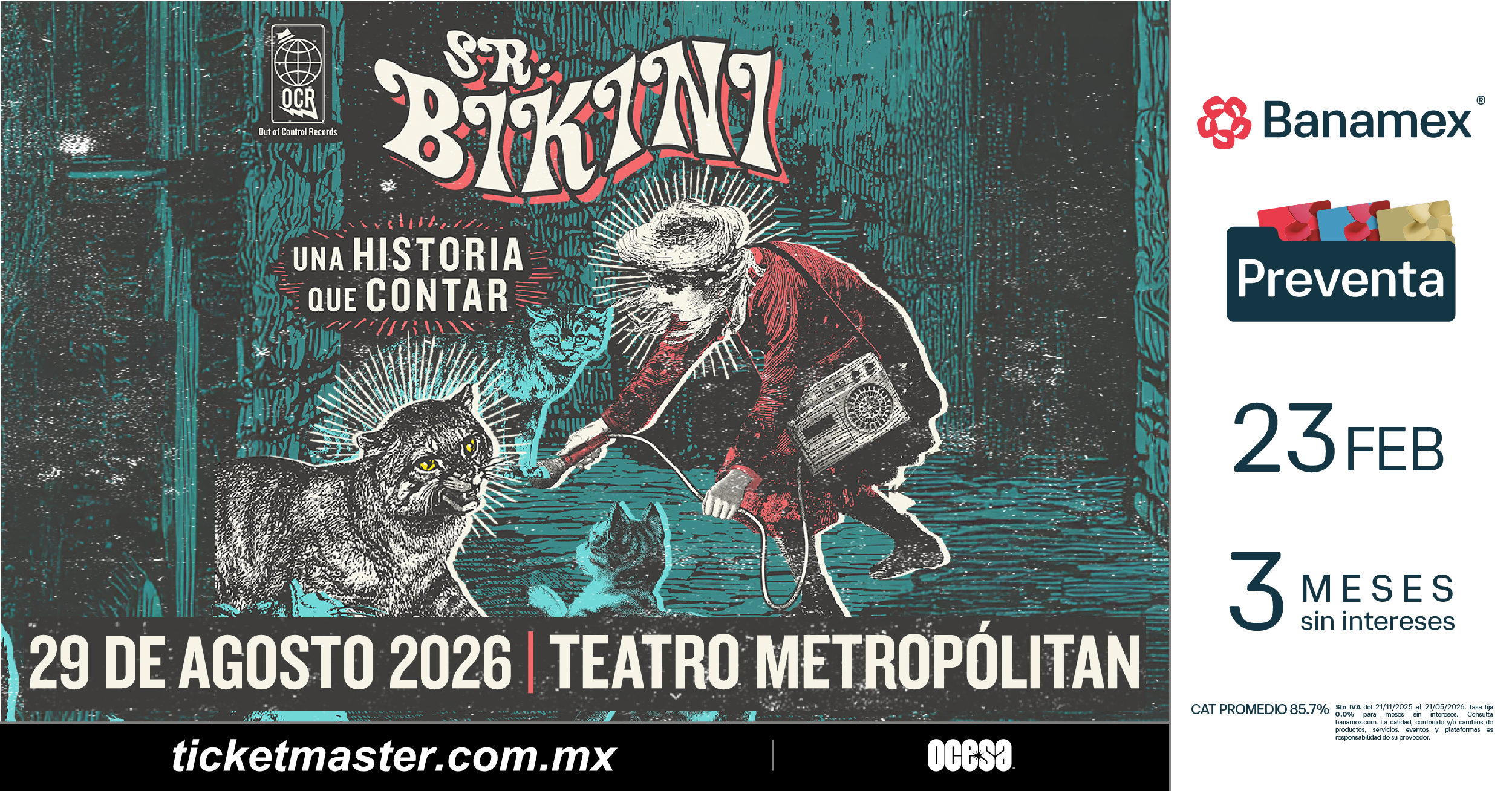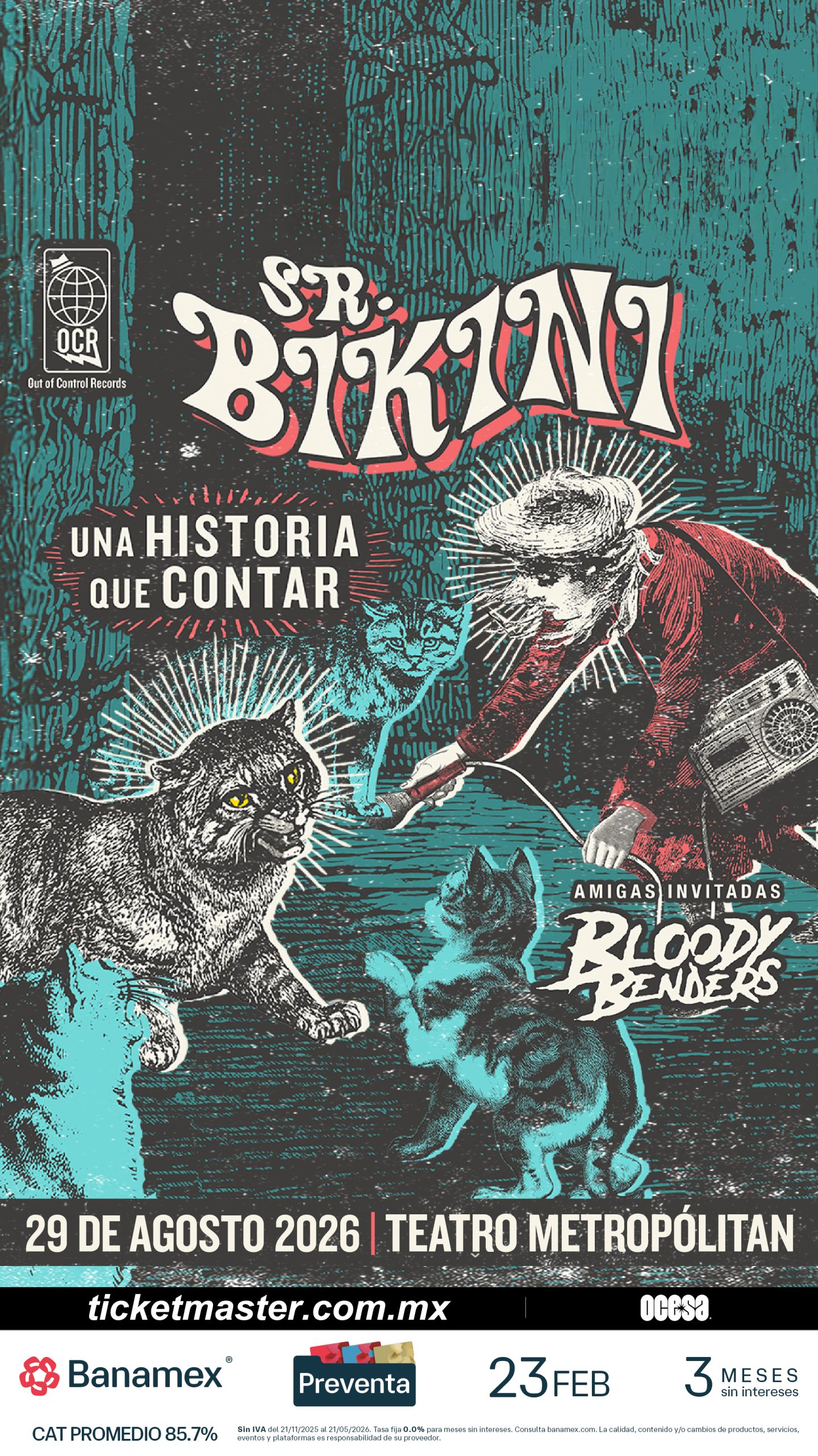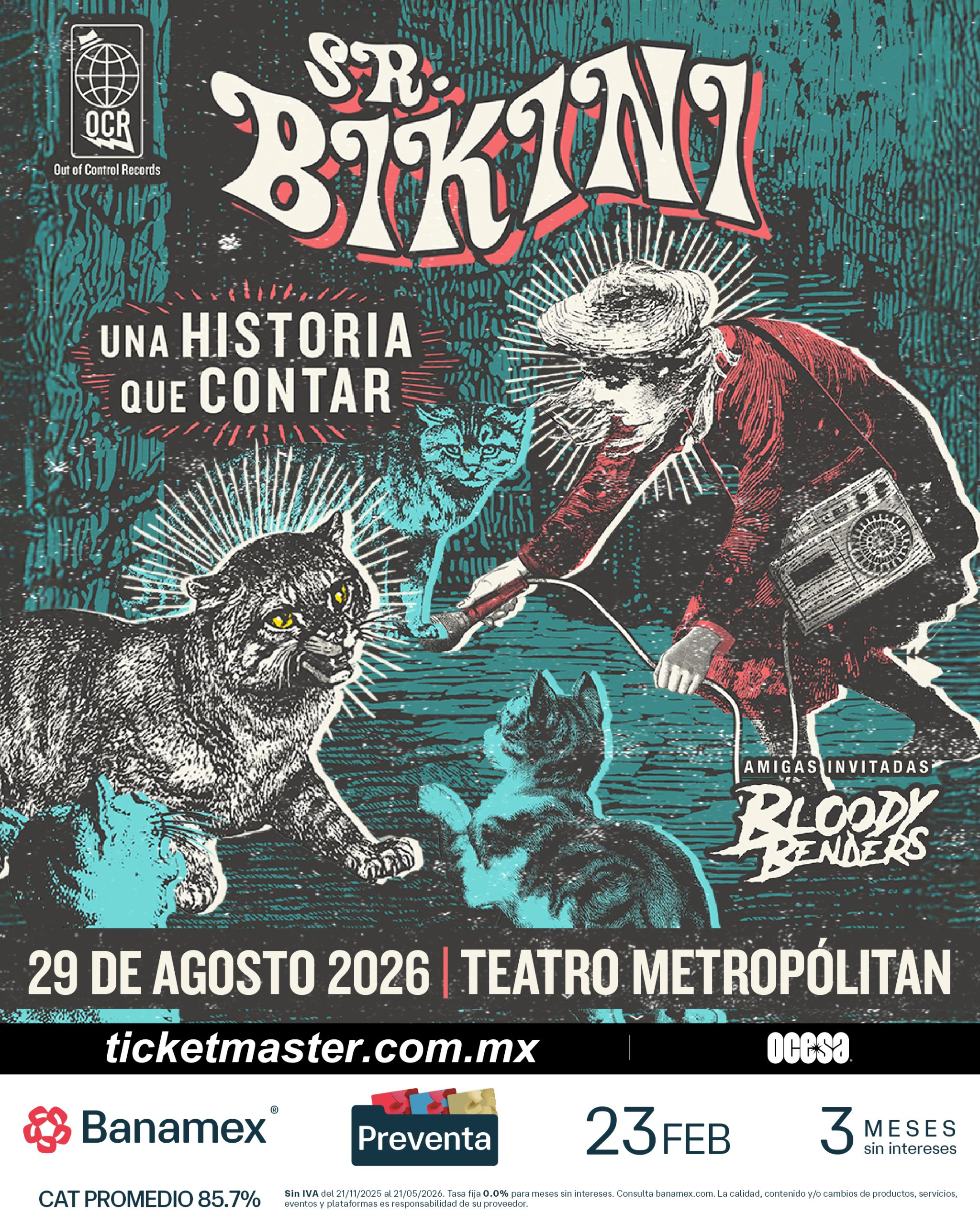 Con una base de seguidores que ha crecido gracias a sus presentaciones en vivo, su cercanía con el público y un empuje constante hacia la experimentación, el espectáculo de Sr. Bikini atravesará distintas etapas de su historia, revitalizando el espíritu que los ha acompañado desde hace 26 años.