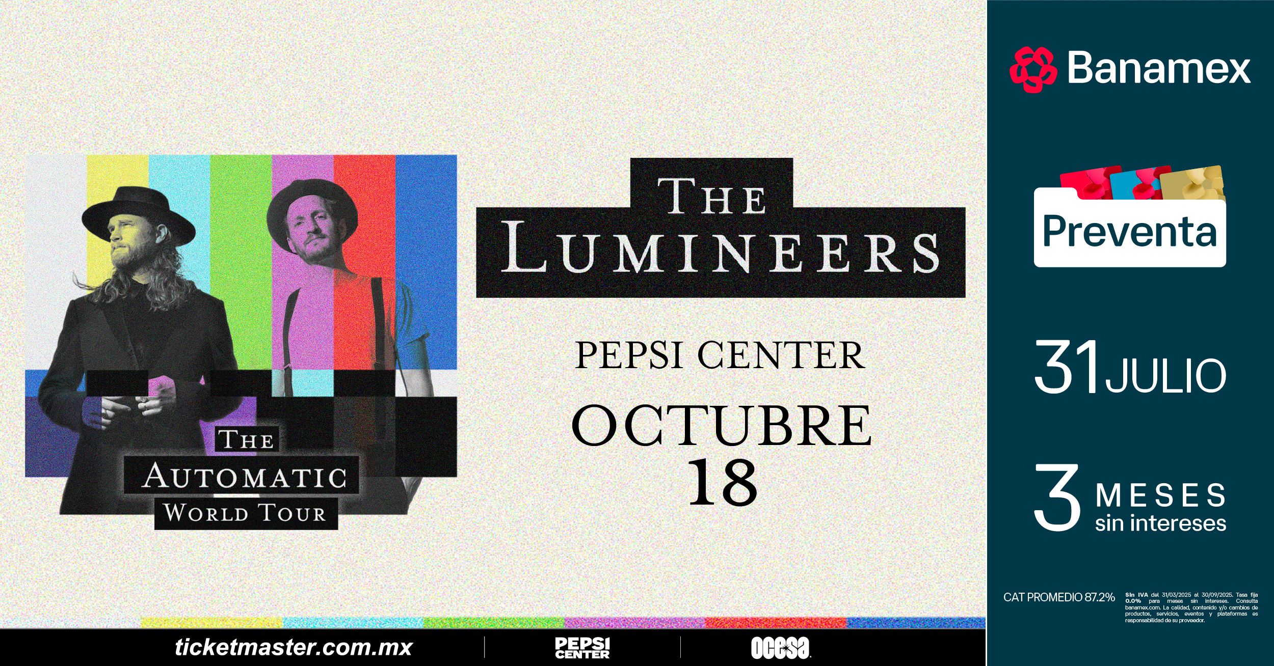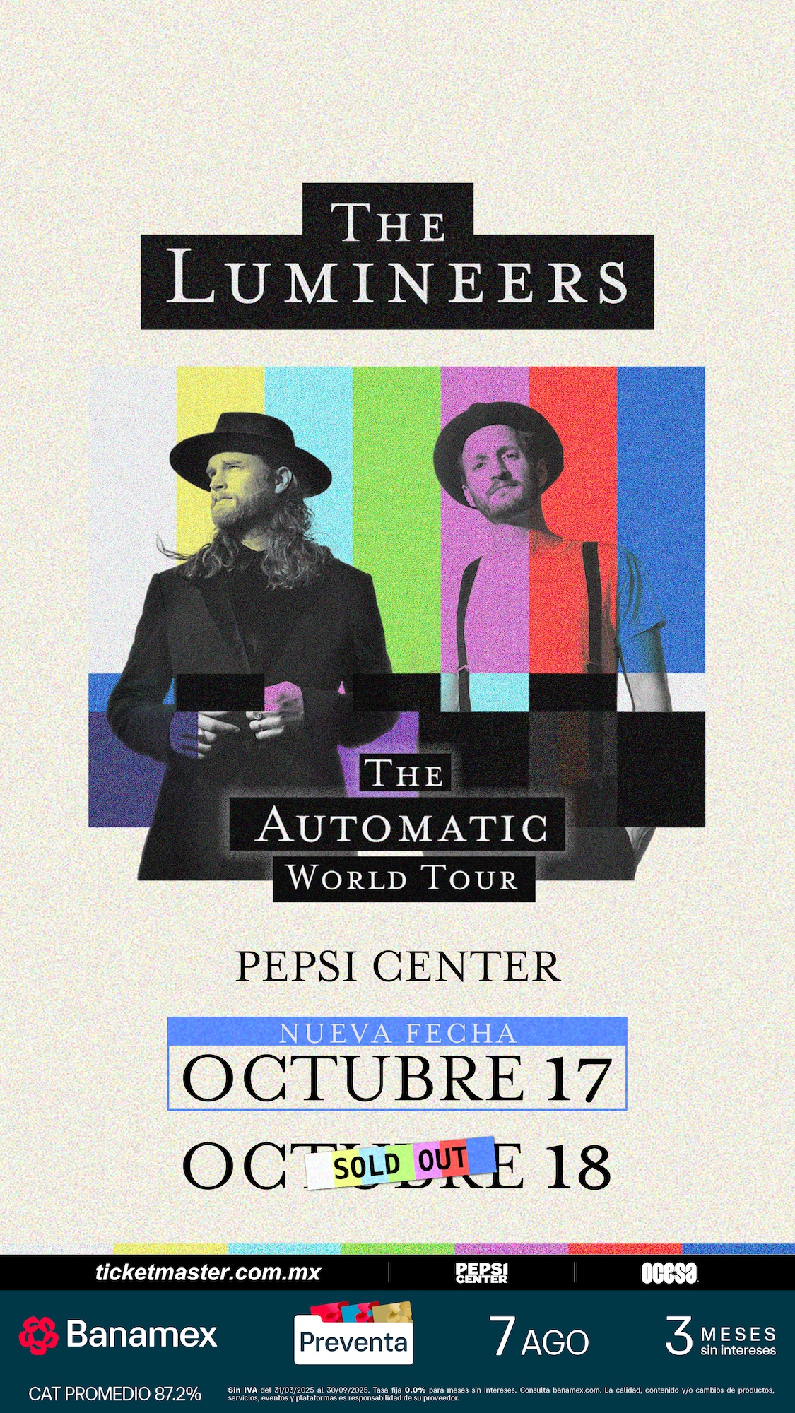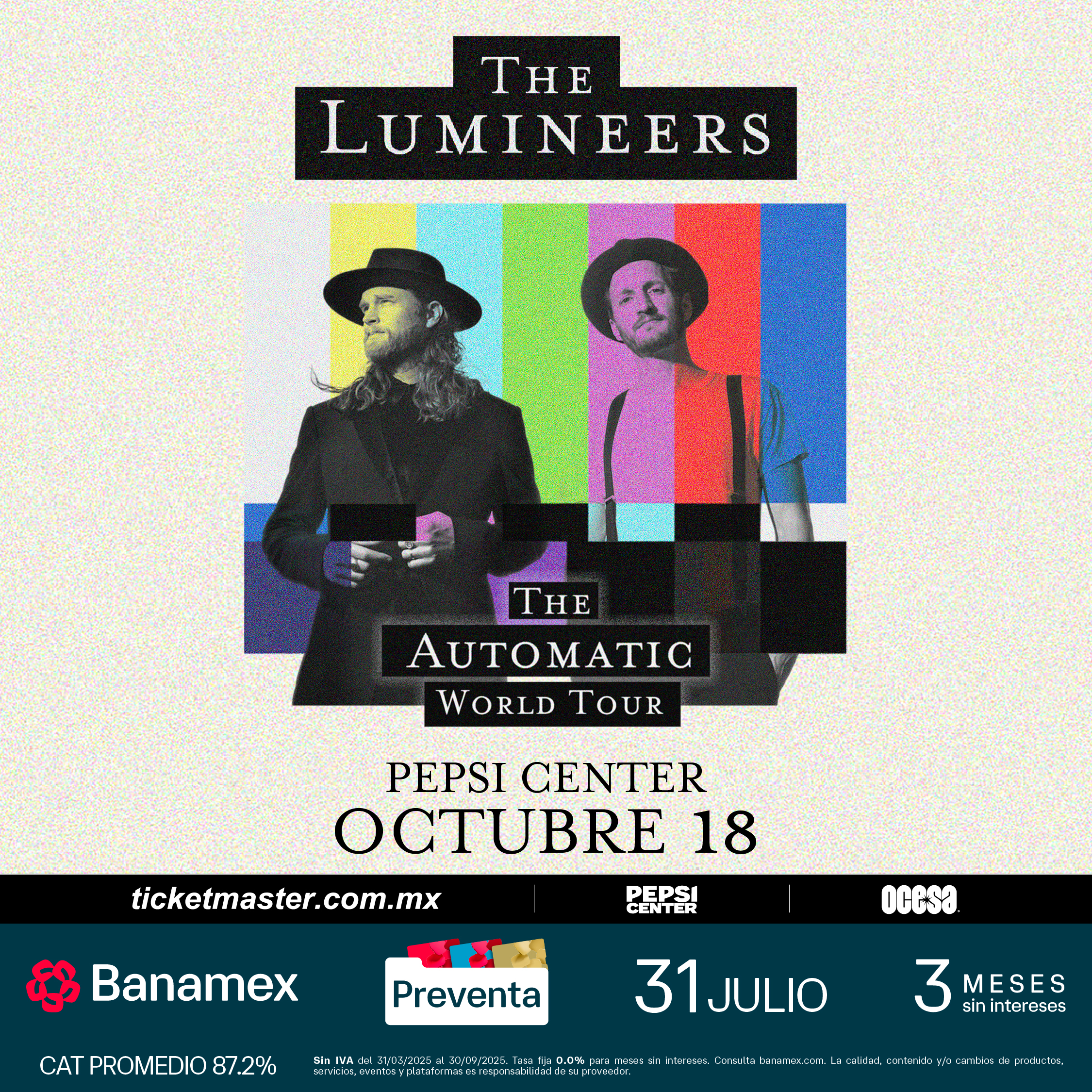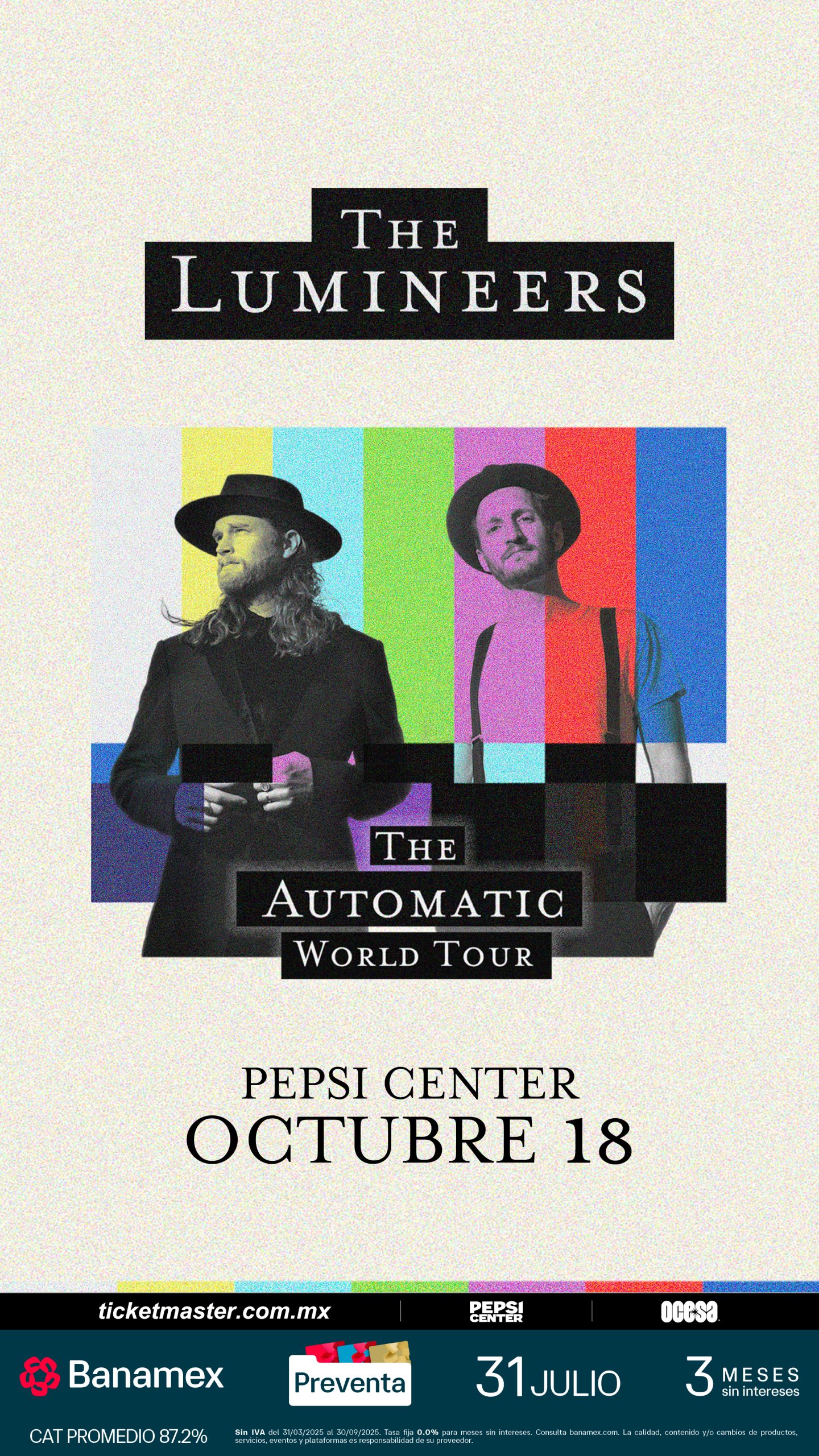 The LumineersA causa del rotundo éxito de su 1ª fecha en la Ciudad de México con sold out, la aclamada banda The Lumineers ha confirmado la apertura de un 2º concierto que tendrá lugar el próximo el viernes 17 de octubre en el Pepsi Center. Esta 2ª fecha forma parte de su gira AUTOMATIC World Tour, con la que promocionan su más reciente álbum, Automatic (2025). Este 2º concierto promete una noche extraordinaria llena de música, emoción y la cercanía característica de una de las bandas más influyentes de su generación.