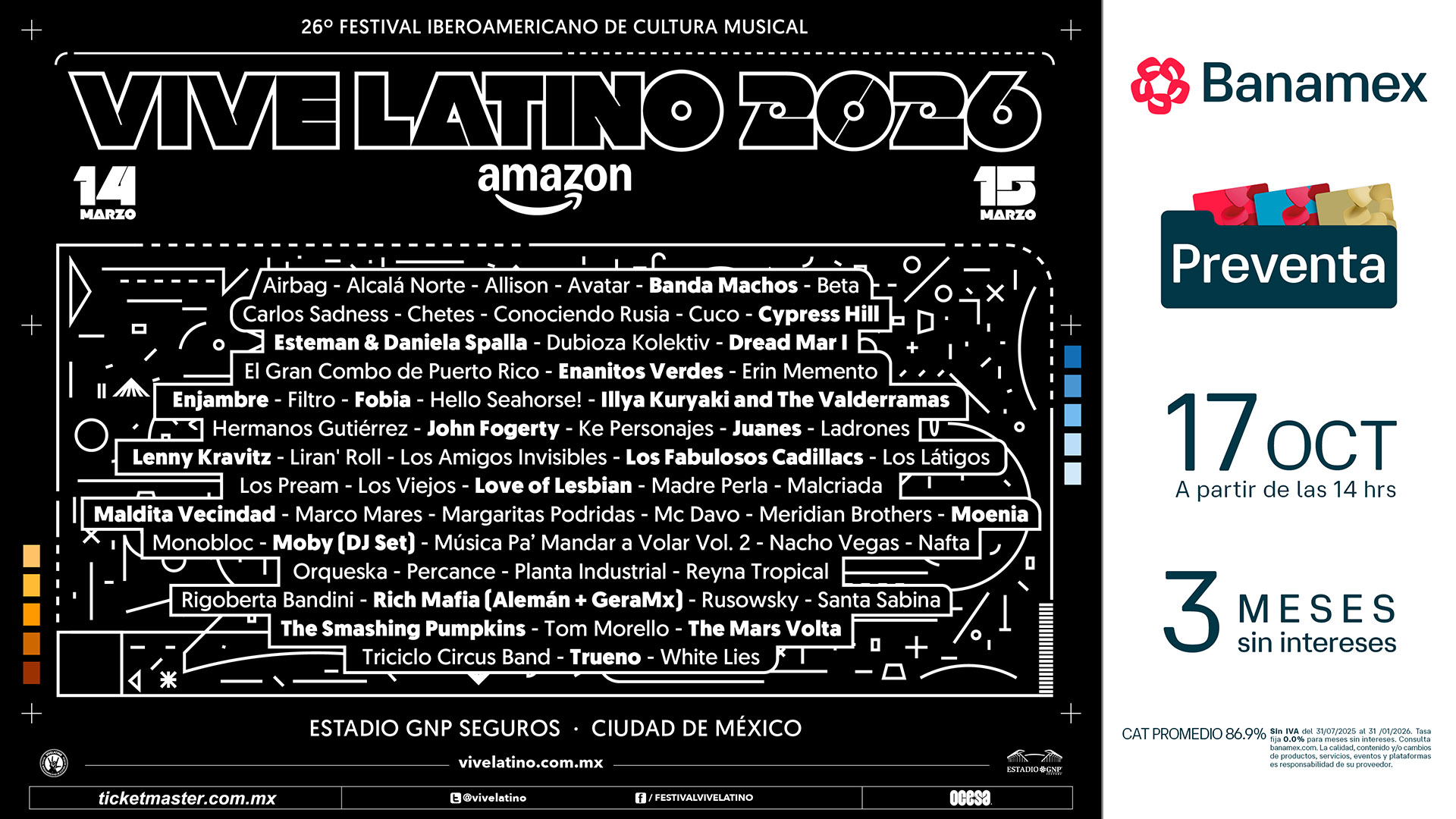 Vive LatinoVive Latino 2026: La música es el código secreto que define nuestra realidad. La historia sonora de México es vasta, increíble e internacional, y su significado más profundo se descifra en los festivales que transforman nuestras ciudades. La música lo codifica todo: es el software de nuestra cultura, el script de nuestros mejores momentos y el algoritmo de nuestro día a día. Con este espíritu vibrante y como cada año, nos emociona presentar la 26ª edición del Festival Iberoamericano de Cultura Musical Vive Latino presentado por Amazon.
