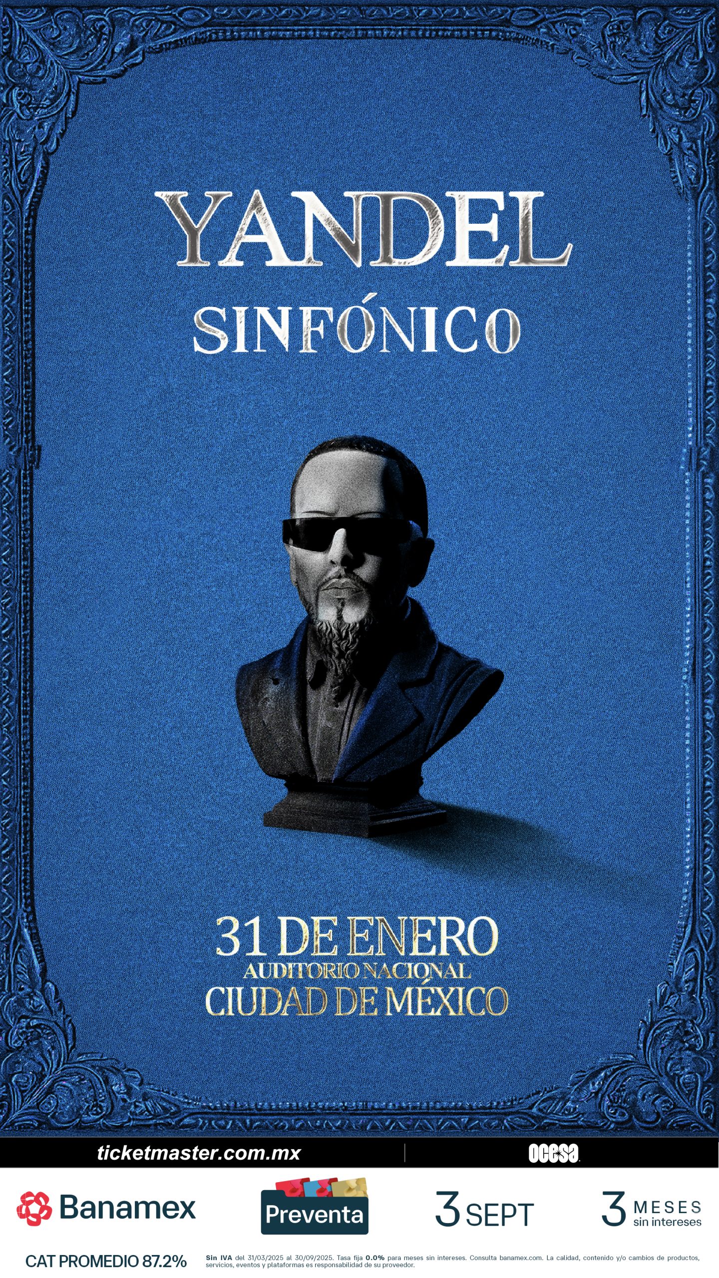 Después de anunciar exitosamente fechas en grandes ciudades como Nueva York y Miami, Yandel confirma que el próximo sábado 31 de enero llegará a Ciudad de México para prenderle fuego al legendario Auditorio Nacional entre arpas, violines, flautas, trompetas y pianos.