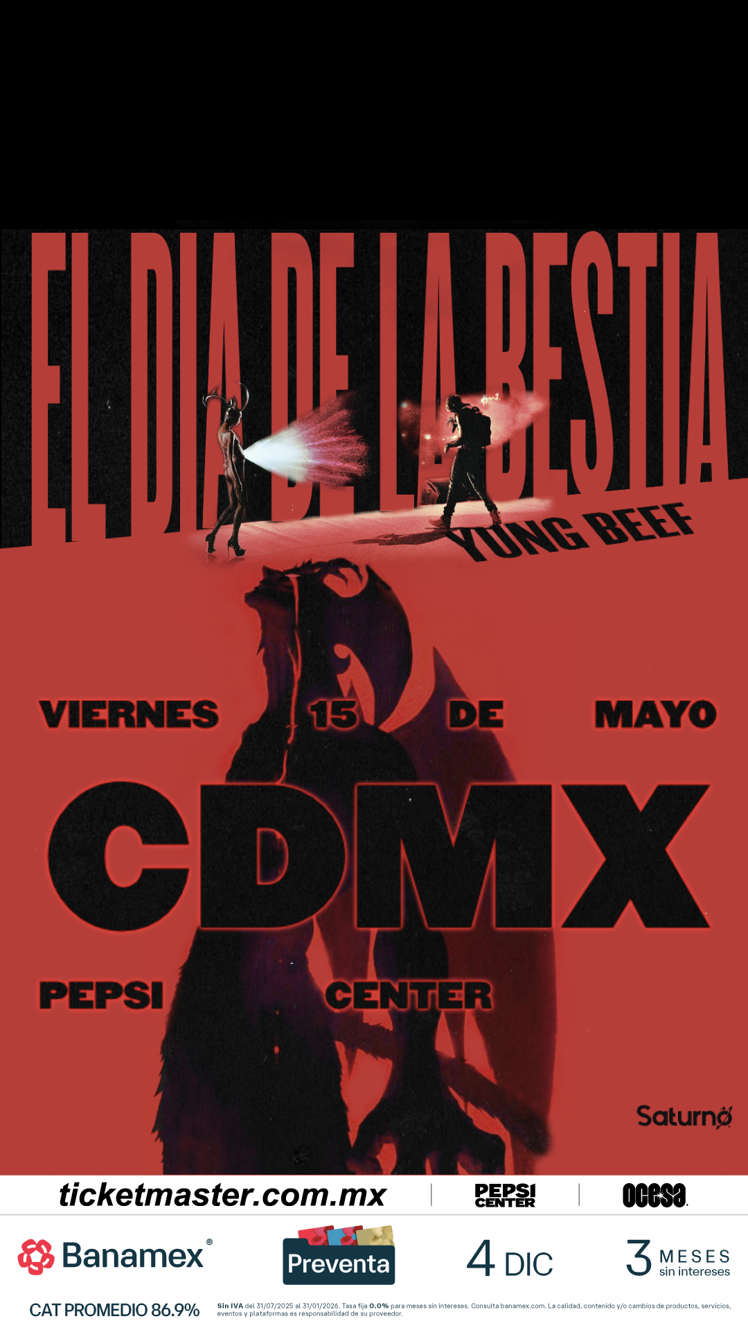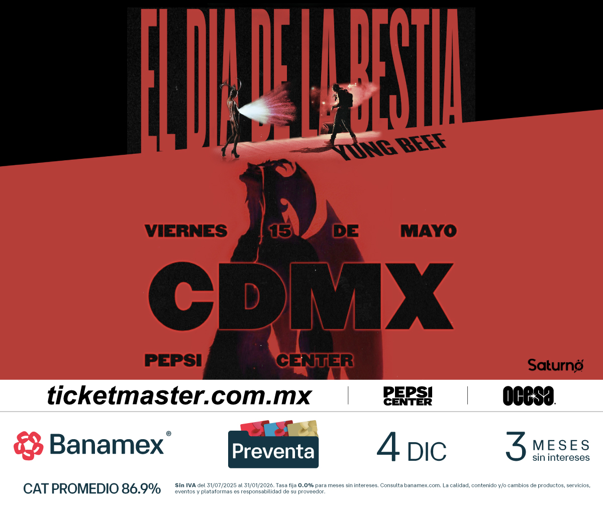 El próximo viernes 15 de mayo de 2026, el Pepsi Center se convertirá en el epicentro del trap español con el debut en CDMX de ‘El Día De La Bestia’, el aclamado espectáculo que Yung Beef ha presentado por toda España durante este año.