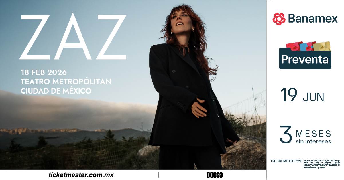 Esta es tu oportunidad de ser parte de una noche mágica con una de las voces más auténticas y emotivas de la música actual. ¡Corre por tus boletos para el 18 de febrero de 2026 en el Teatro Metropólitan y déjate enamorar por el encanto de Zaz!